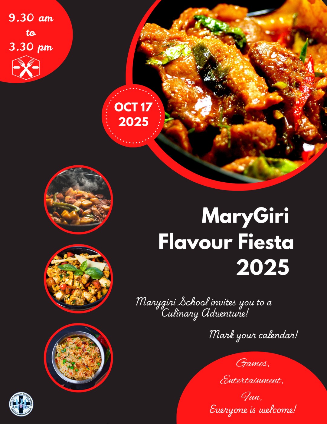 - Marygiri School's campus transformed into a culinary carnival on October 17, 2025, for the inaugural Flavour Fiesta! Students, teachers, and families indulged in a delicious array of homemade dishes, global cuisines, and sweet treats. More than just a food festival, it was a day of community spirit, friendly competition, and unforgettable tastes. Check out the gallery for highlights of this spectacular gastronomic event!